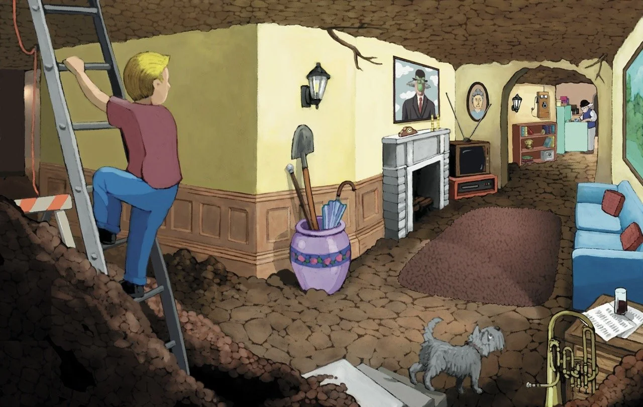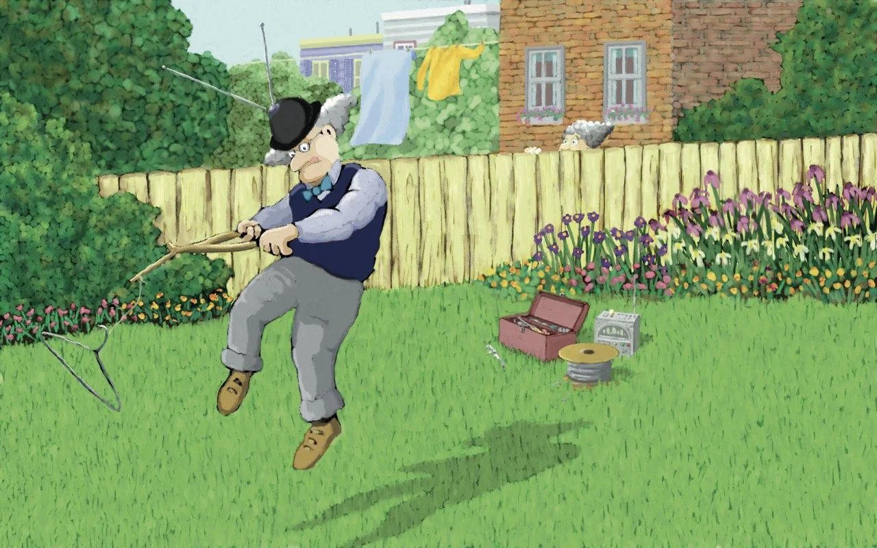 It all started when Uncle Frank came for a visit and stayed, and stayed, and stayed. It seemed nothing would rouse him from his comfortable spot in front of the TV. That is, until the day he hung an old coat hanger on a stick and picked up some unusual signals emanating from the backyard. All at once Uncle Frank was bound and determined to find whatever was buried out there, no matter how long it took. So he started to dig a hole, and what happened next would make more than just family history.